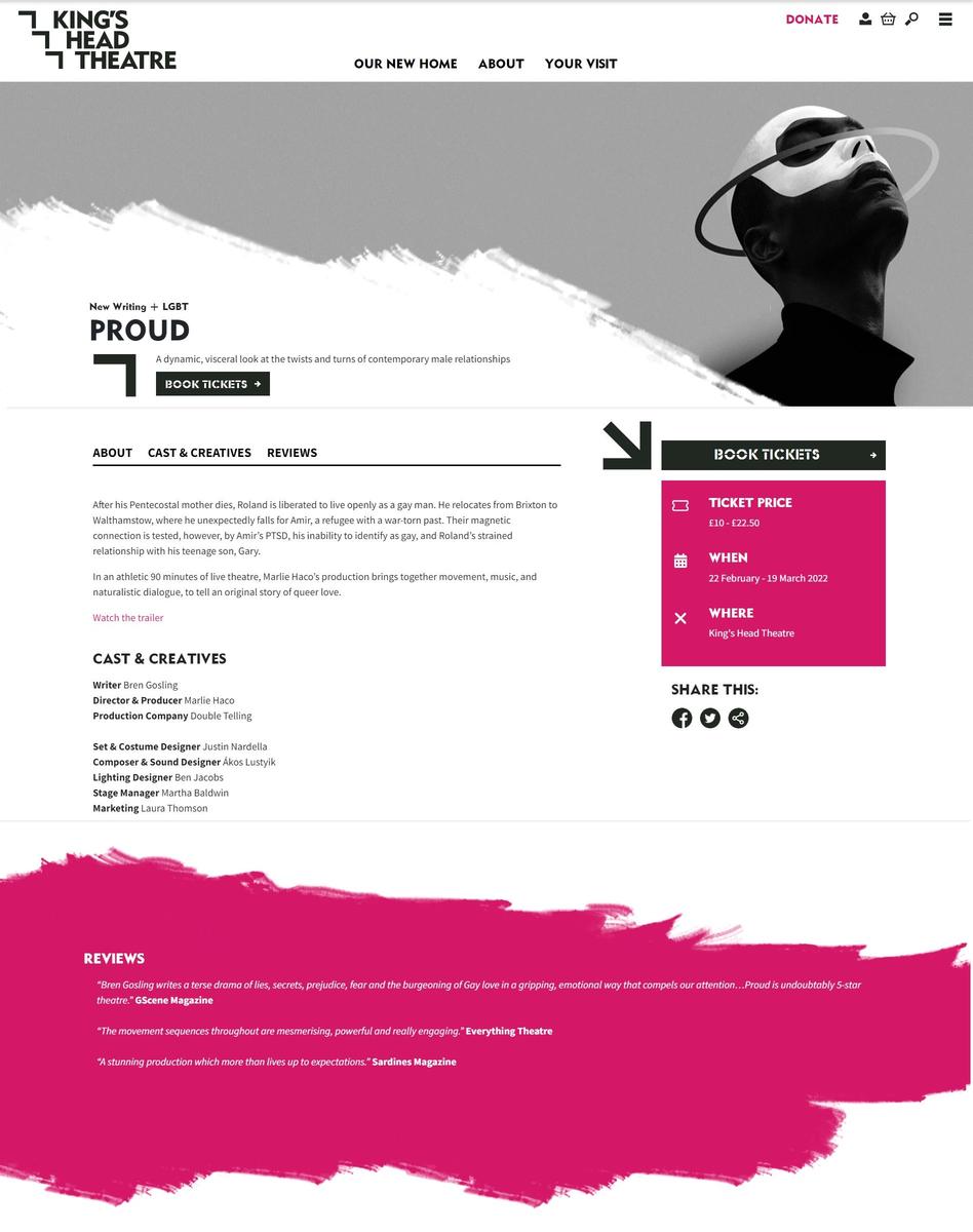 STREET SWEEPER inspired Bren's play PROUD, which has had a successful four week run at King's Head Theatre produced by Double Telling, garnering excellent reviews: