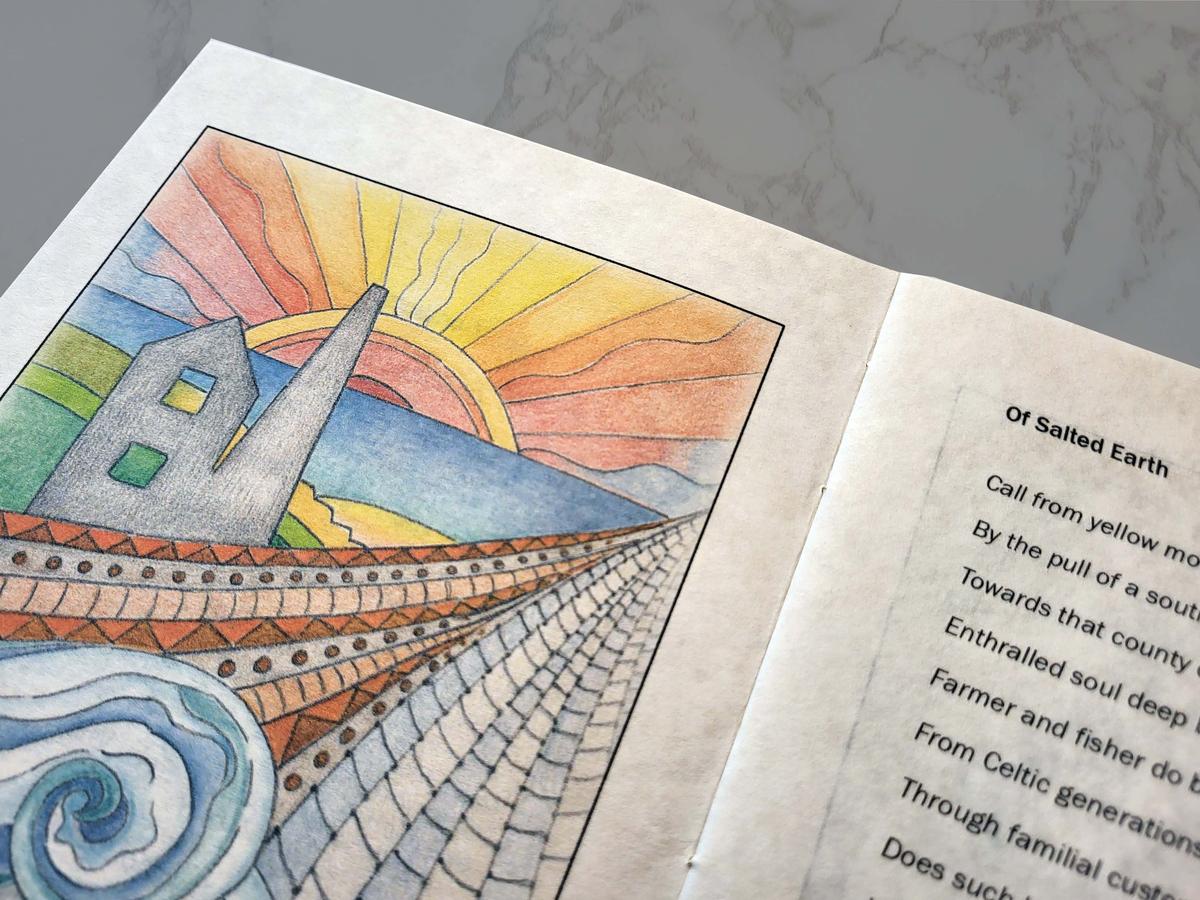 I also write poetry and enjoy creating my handmade and handsewn poetry pamphlets or chapbooks; these are always a work in progress (in terms of a broader body of work) as I am always writing more and coming up with ideas for new versions. I also create all the illustrations for my poems. Some of my chapbooks are complete (Big Themes, Little Verses: Volumes 1-4, plus, Haiku Volume 1) and available to buy through my Folksy shop alongside other works such as Haiku Art Prints, Poetry Art Prints and Mixed Media Art Prints.